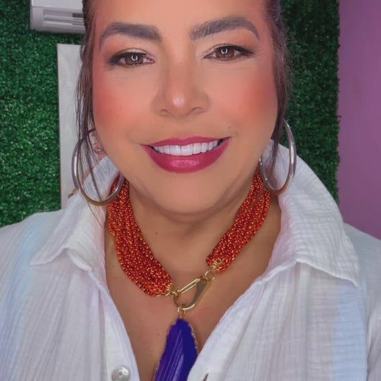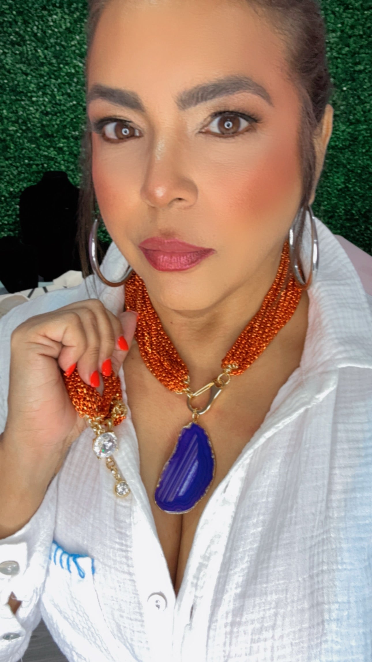 El Conjunto de Collar y Pulsera Agata Violeta es una exclusiva combinación que incluye una cadena y una piedra fina de ágata en un elegante tono violeta, acompañada de boldes dorados. Con este conjunto, podrás lucir sofisticada y elegante en cualquier ocasión. ¡Añádelo a tu colección de joyas ahora mismo!