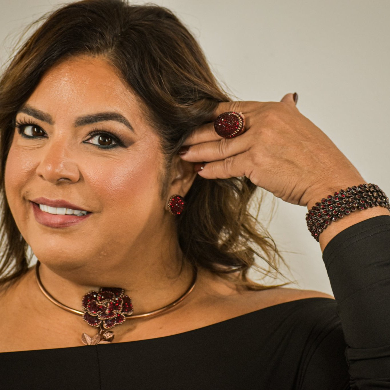 ¡Eleva tu estilo con nuestra serie de colares, pulseras, pantallas y sortijas! Hechos con cobre y piedras en rojo, cada pieza está adornada con detalles de flores y corazones para un toque femenino y único. ¡Haz una declaración de moda con Alma y Corazón!