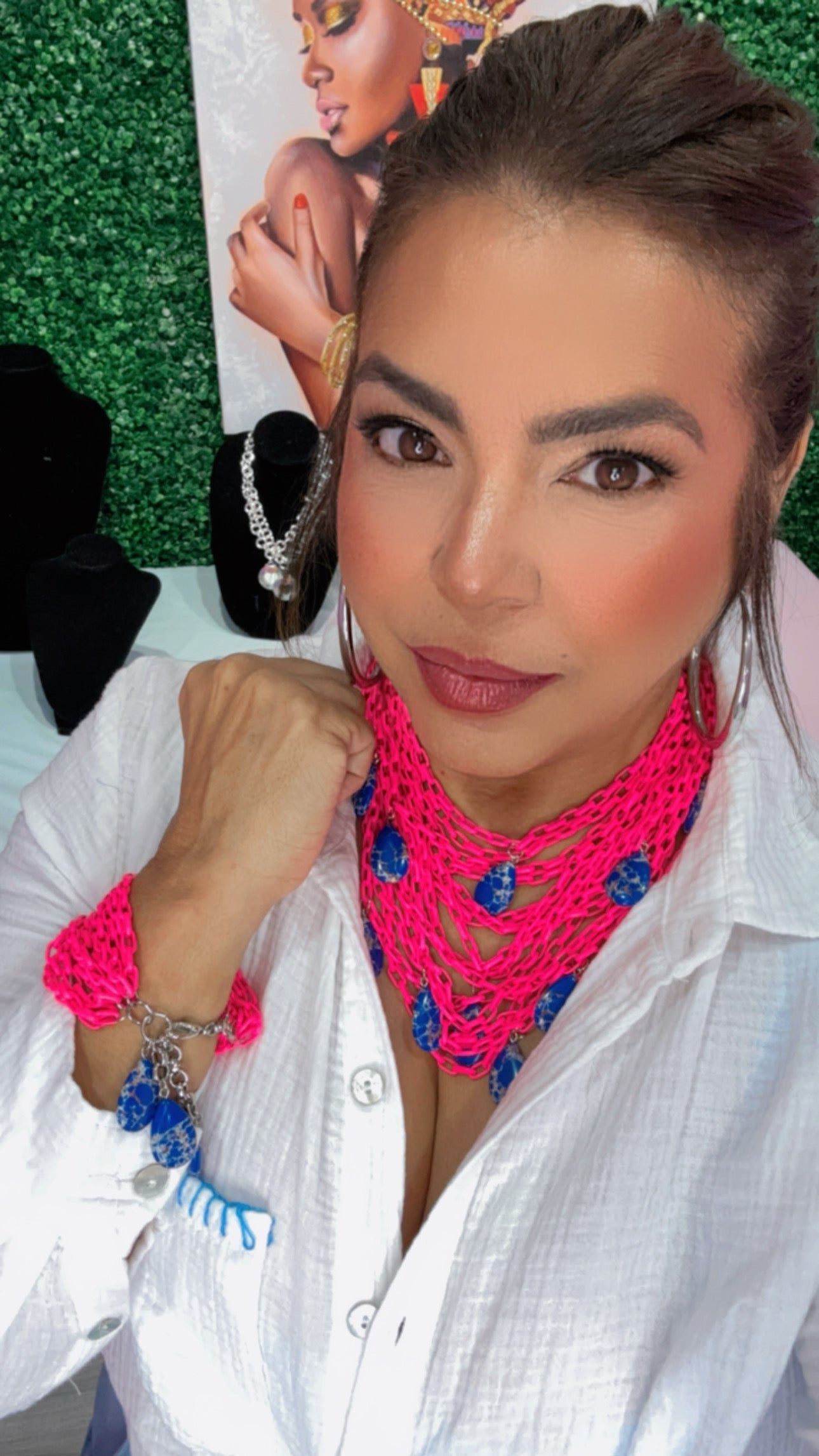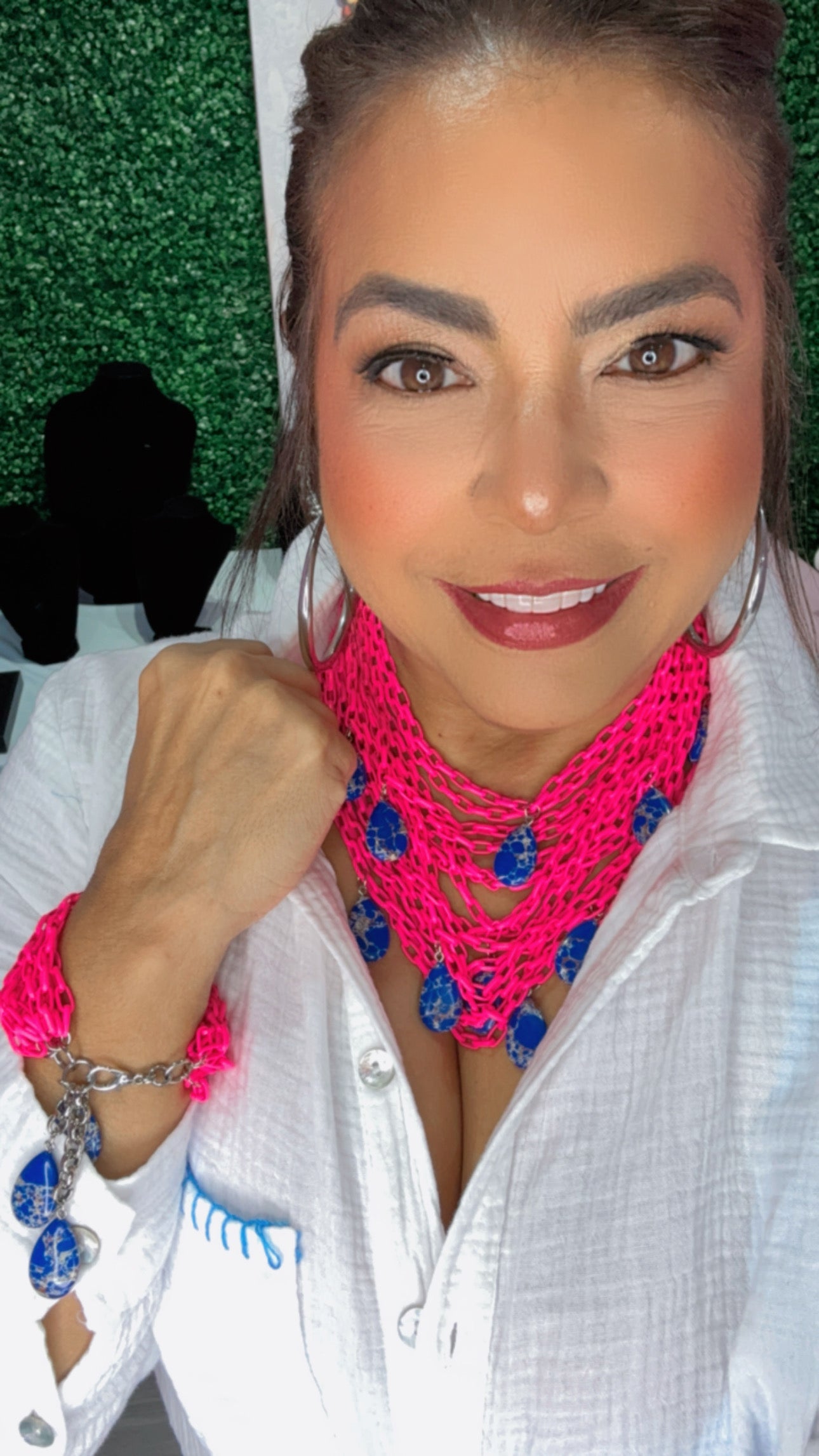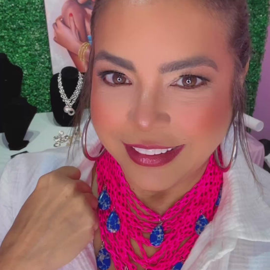 ¡Añade un toque vibrante a tu atuendo con nuestro collar fucsia neón con varias cadenas a juego con su pulsera! Diseñado para la mujer fuerte y motivada, este accesorio de moda inspirador te hará destacar mientras te recuerda tu fuerza interior. ¡Haz una declaración de estilo y empodérate con este collar único!